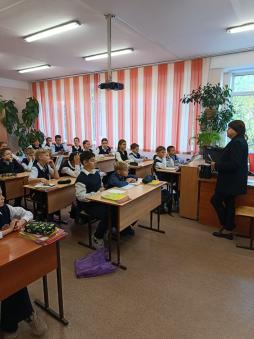 29 сентября 2025г., в нашей школе в 10а, 10в, 11а, 11б и 11в классах состоялась встреча с лейтенантом полиции Черненко Ж.П.